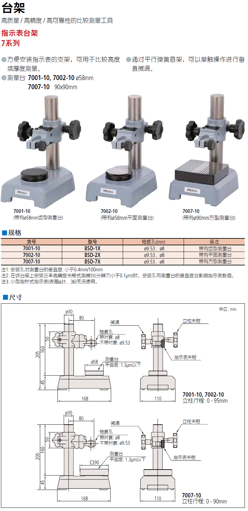 • 7001-10 和 7002-10 的测砧: ø58mm7007-10 的测砧: 90mm 方形。