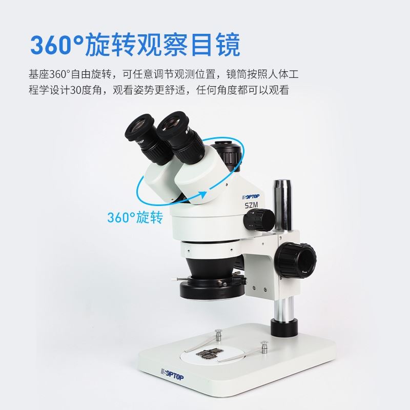 三通观察头,30°倾斜,固定式分光比(双目 :三目 =50:50),瞳距调节范围 50-76mm,固定式目镜筒,带目镜锁紧装置 | |
