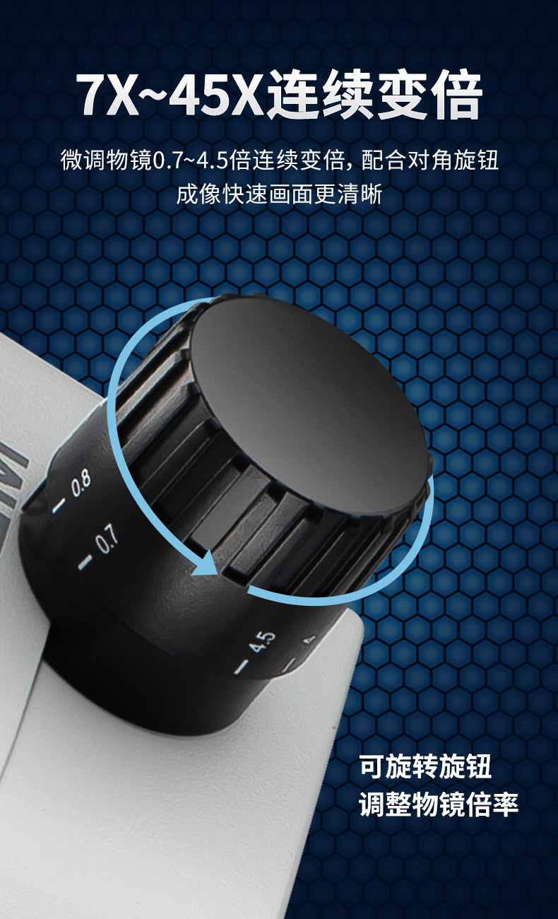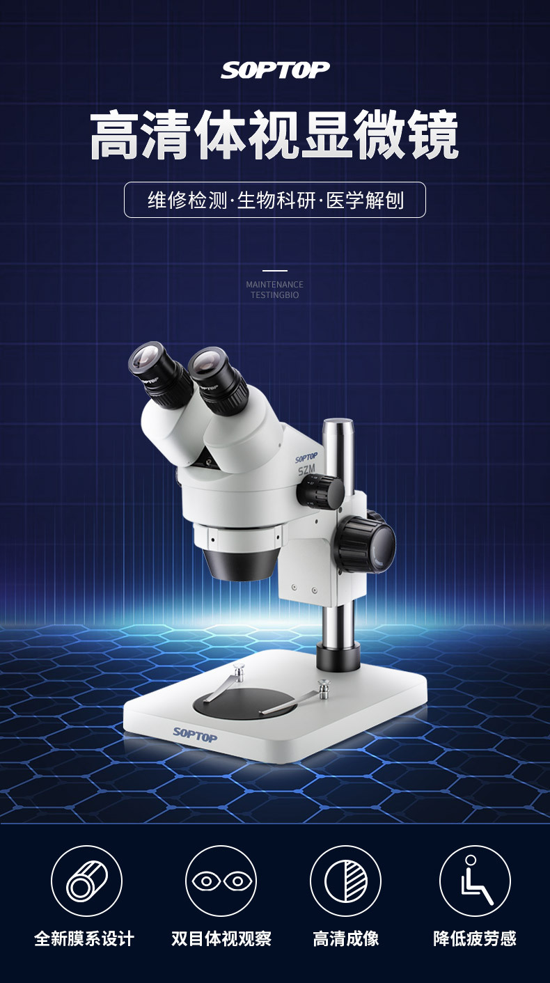■ 范围更大的放大倍率。标准放大倍率7X~45X;选配辅助物镜,放大倍率3.5X~180X