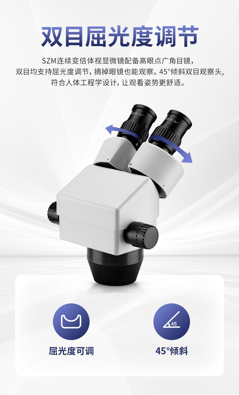 观察头 | 可调仰角三通观察头,倾角可调范围 5°~ 45°,两档光路选择( 双目或 三目),瞳距调节范围 50-76mm,固定式目镜筒,带目镜锁紧装置 |