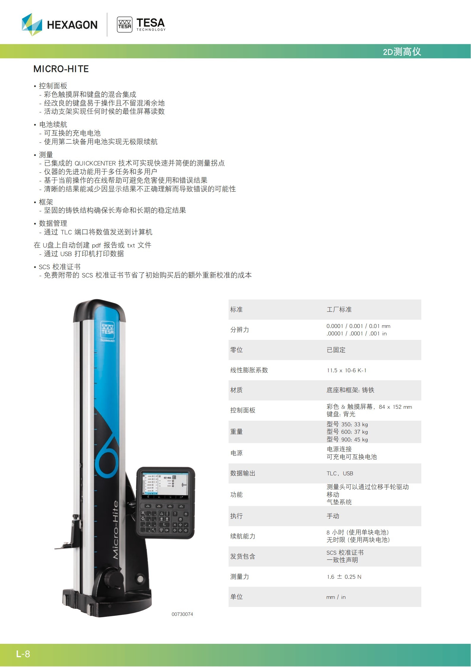| 重复性极限 [in] | 在平面上: ≤ .00005 在孔内: ≤ .00005 | |