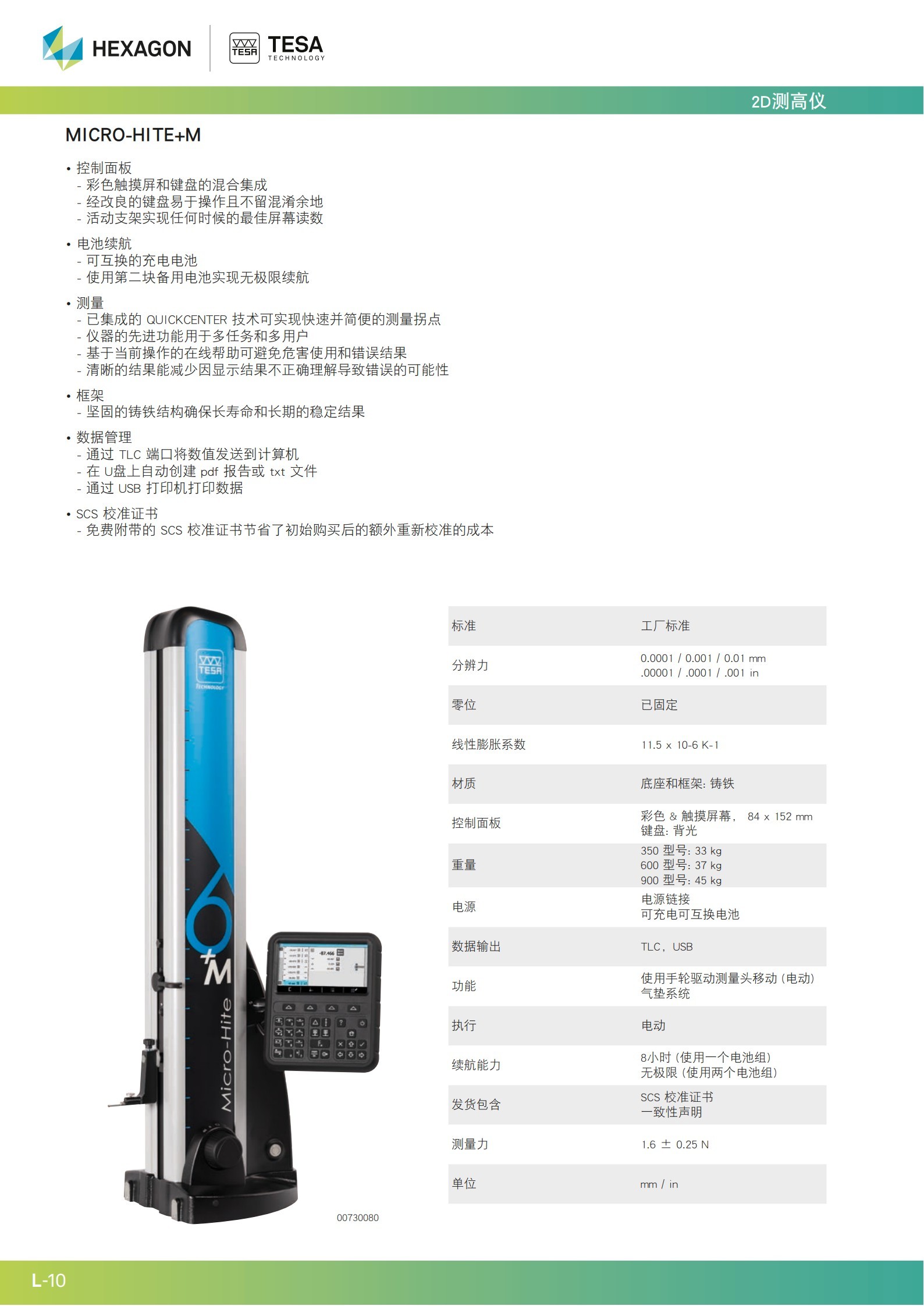| 重复性极限 [in] | 在平面上: ≤ .000025 在孔内: ≤ .00005 | |
