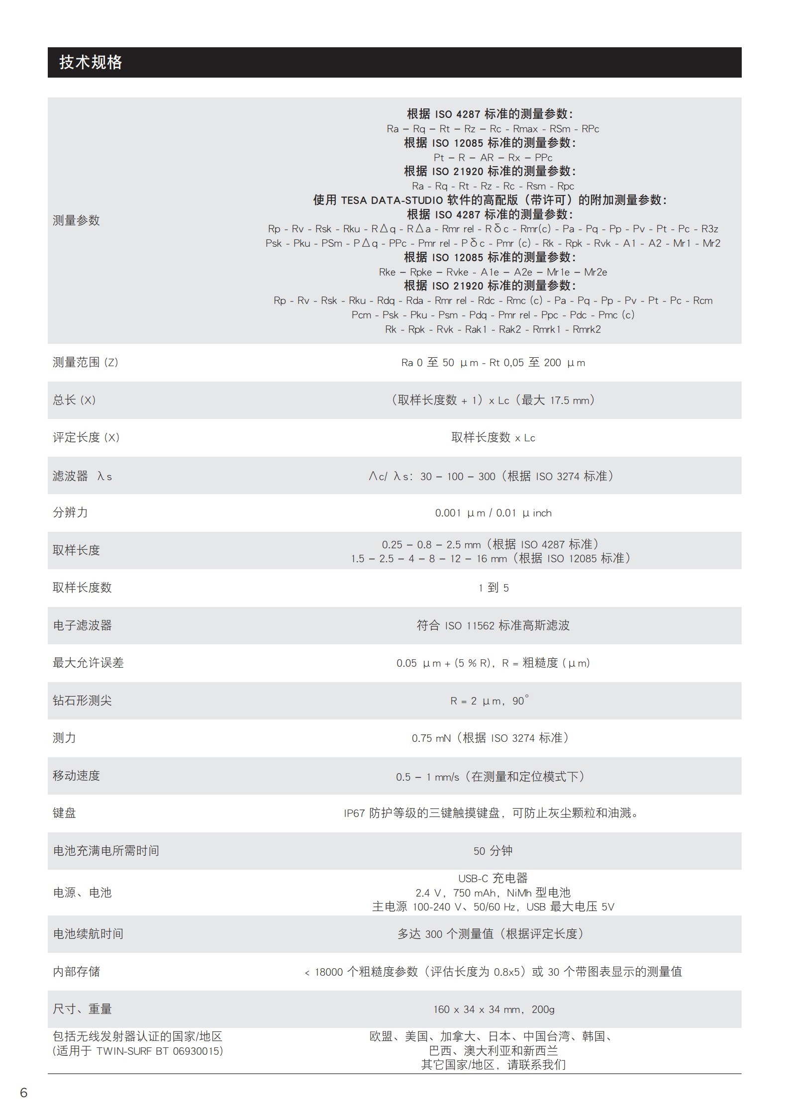 | 标准 | ISO 3274, ISO 4287, ISO 12085, ISO 21920 |