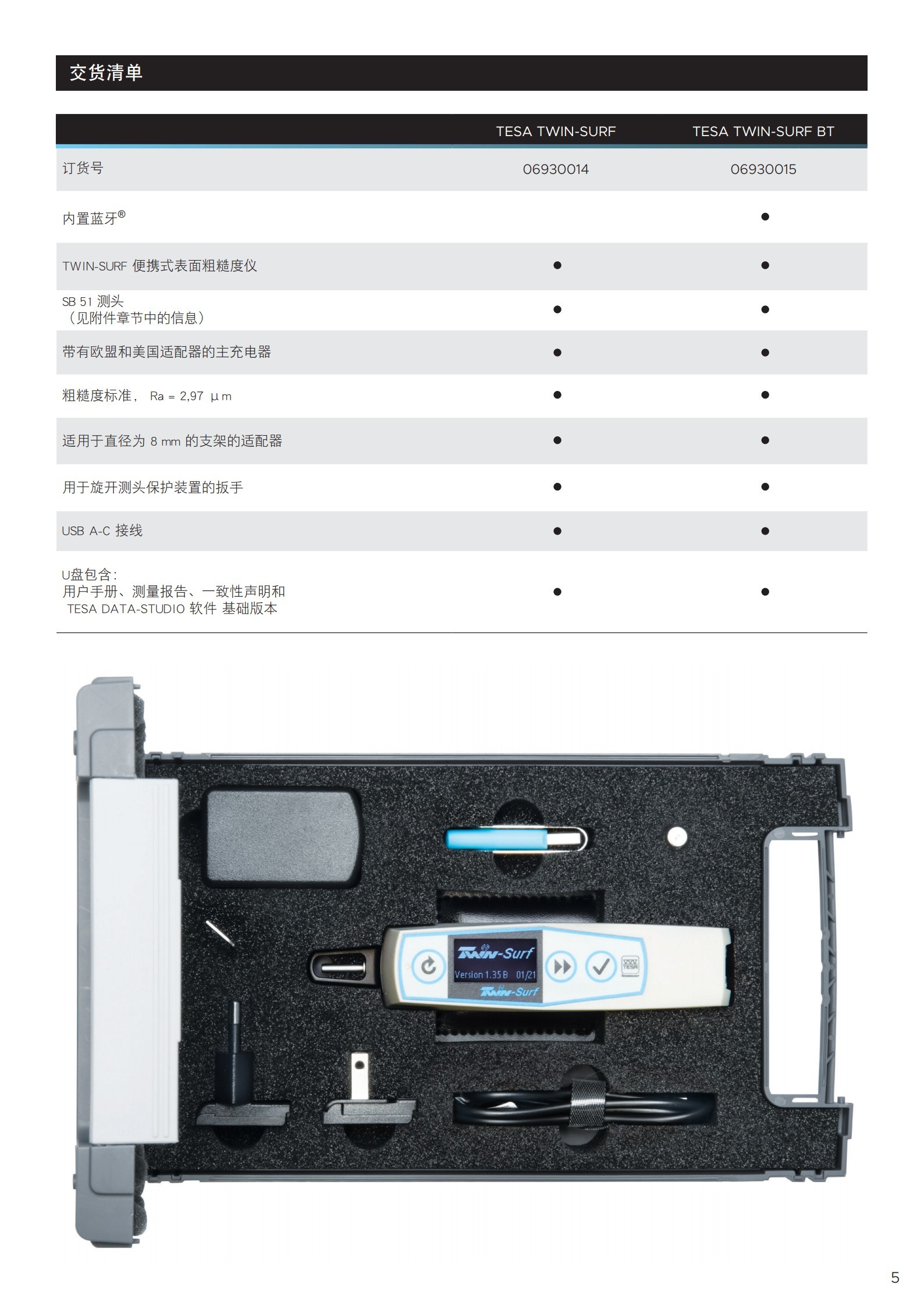 | 描述 | TWIN-SURF 粗糙度仪, 蓝牙® 版 | |