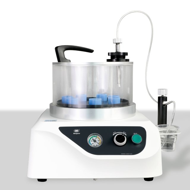 该机使用简单:将试样模具放置于真空容器内,镶嵌化合物混合好以后,将搅拌杯放入到杯架上将真空容器于基座上,将镶嵌化合物倒入到模具中,浇注好以后保持一分钟,然后转至大气压下,重复该循环数次,打开腔体,使其正常固化。