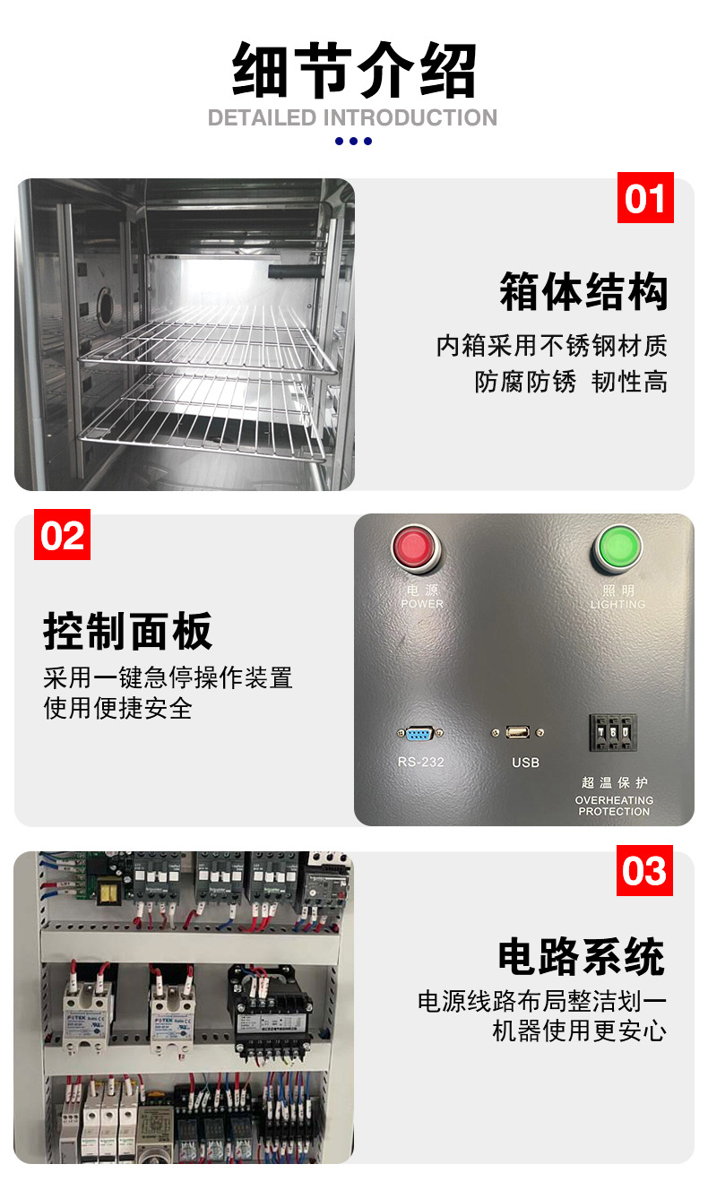 强制内循环通风,可调式导风板设计,平衡调温调湿以保证试验箱温场均匀