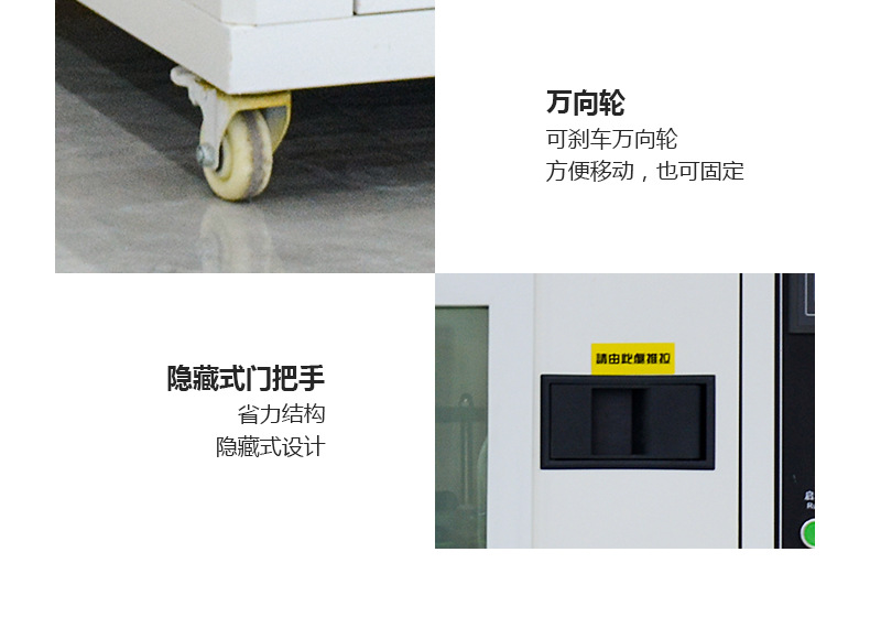 我们在设备底部设计了四套脚轮,可以移动可以固定