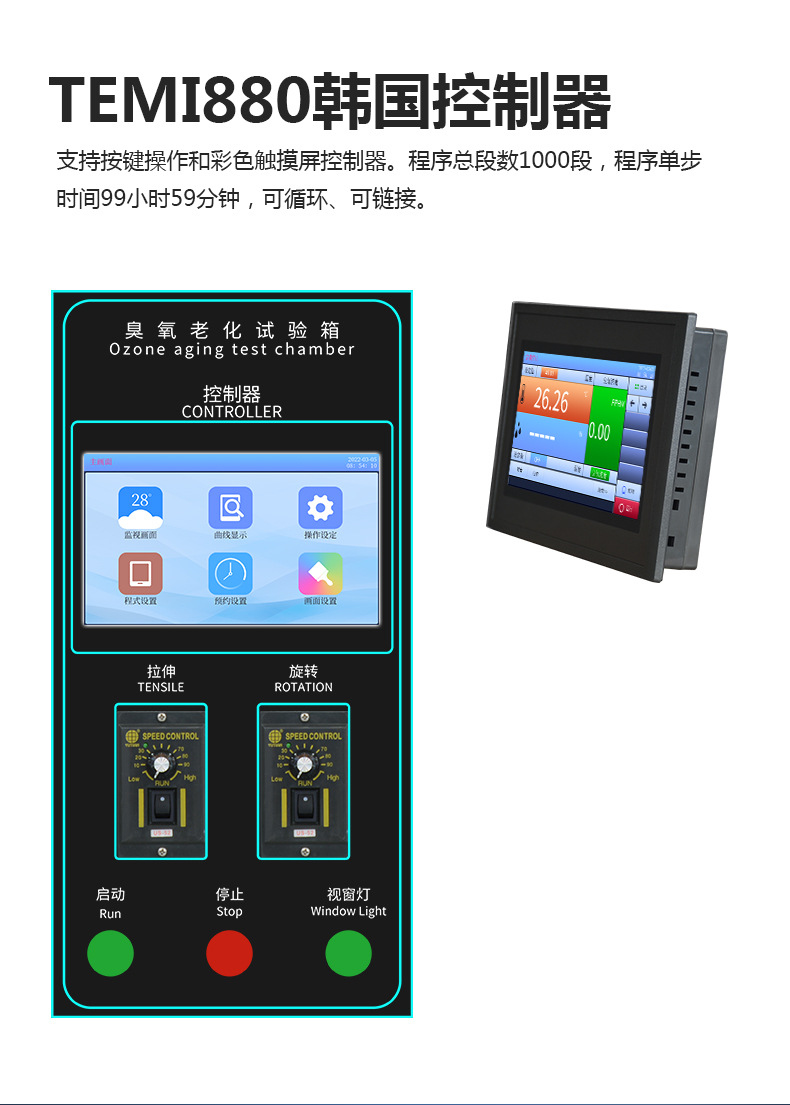 7寸真彩触摸屏控制仪表,操作简单,设定方便,控温精度0.01℃,超出1200段编程(可以选购普通双数显LED仪表)