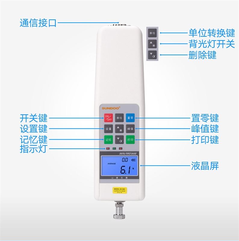 可换N、kgf、lbf三种计测单位,并自动换算