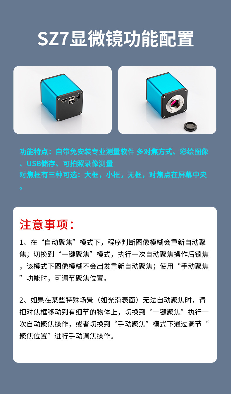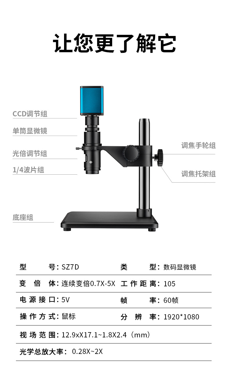 SZ7D标准放大率:0.7X~5X,SZ7CHI标准放大率:1X~7X。