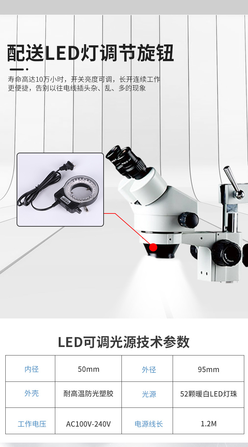 【工作距离】 当不加任何附加物镜时是100mm,加0.5Xt加物镜是165mm,加2X附加物镜是30mm