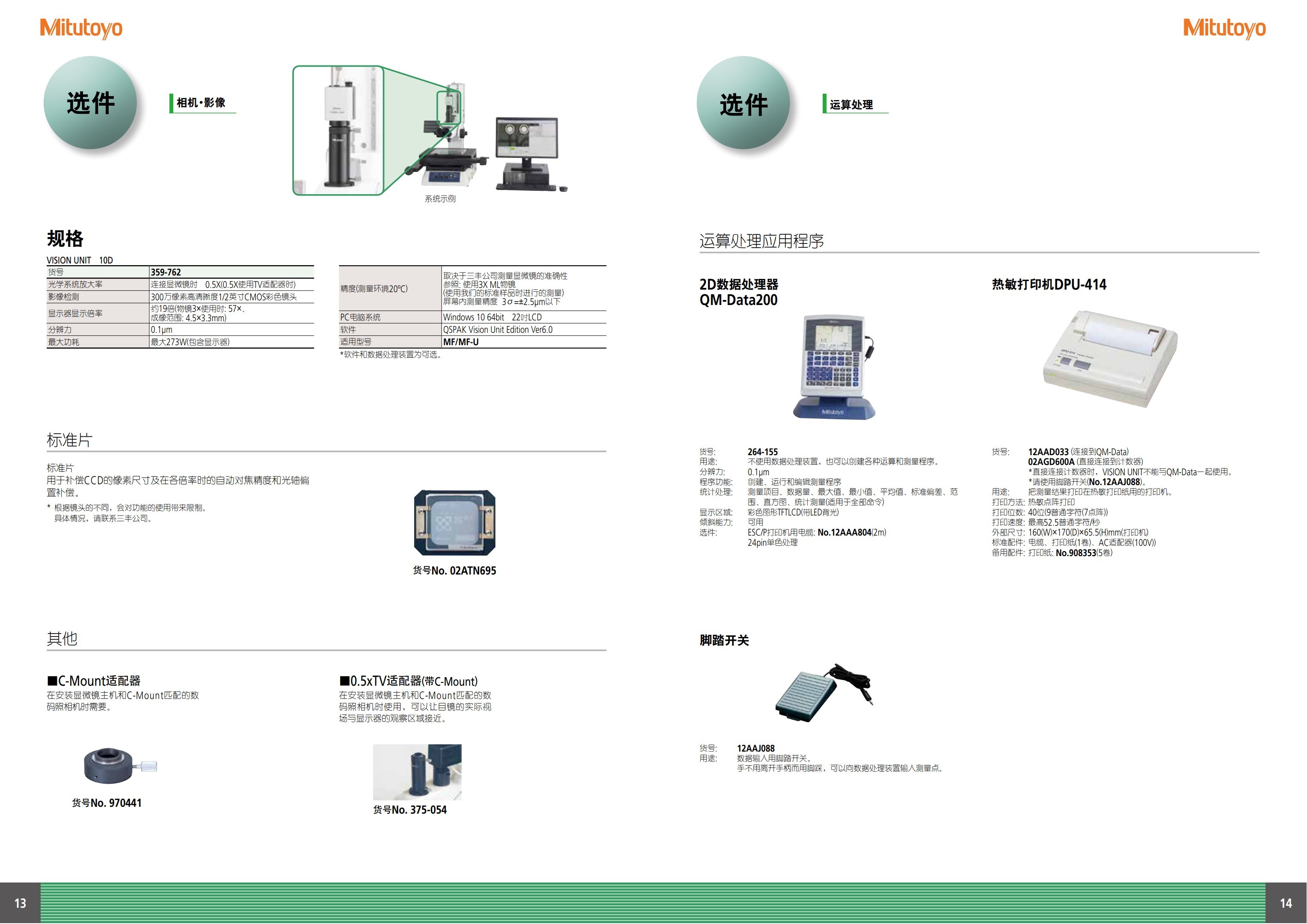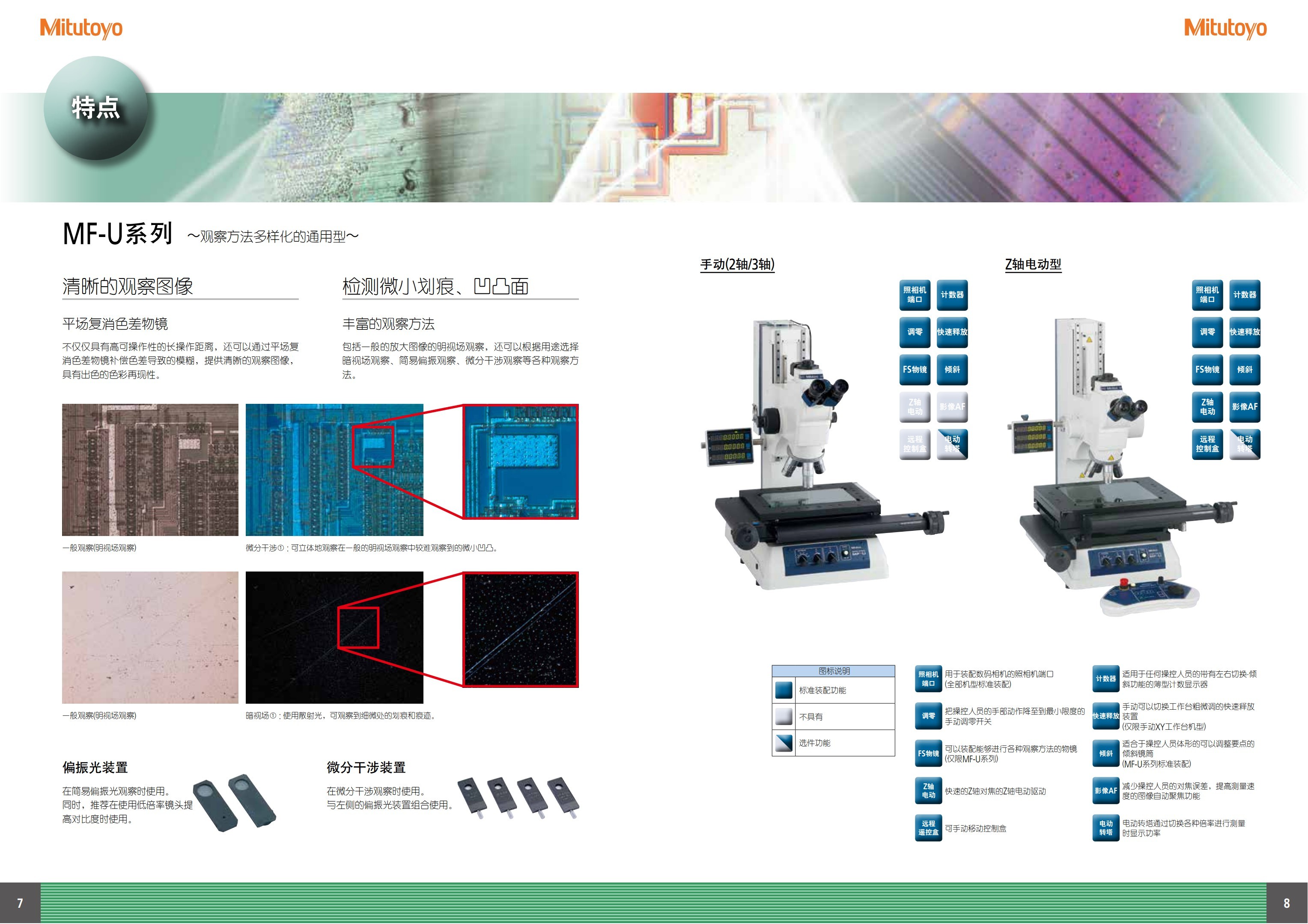 • 标准测量显微镜,配有种类繁多的可选附件,包括Vision Unit 影像装置与各种CCD数码相机。