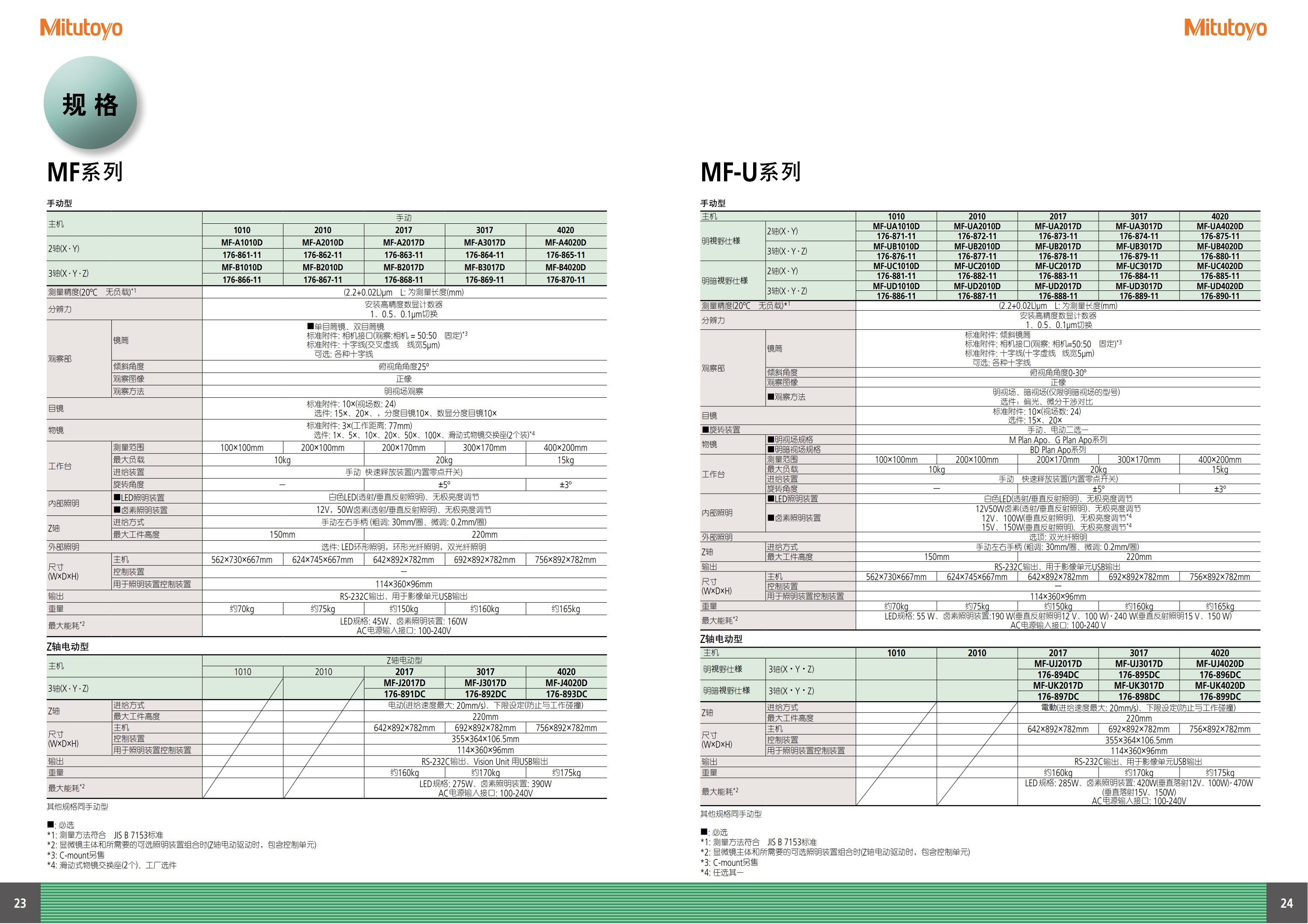 XY轴 | 测量范围 | 100×100mm | 200×100mm | 200×170mm | 300×170mm | 400×200mm |