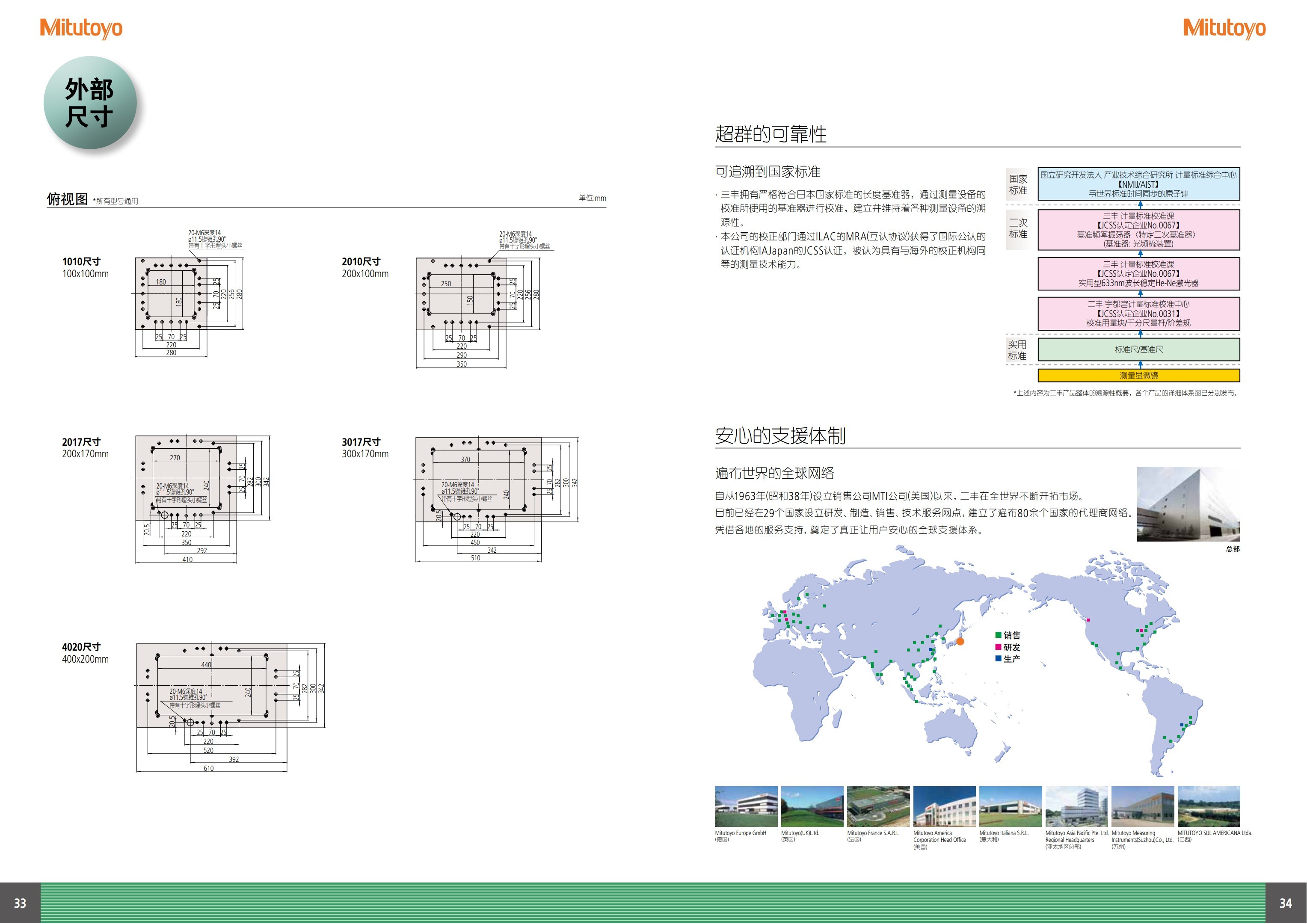 • 各类尺寸的标准工作台,大达到400×200mm。