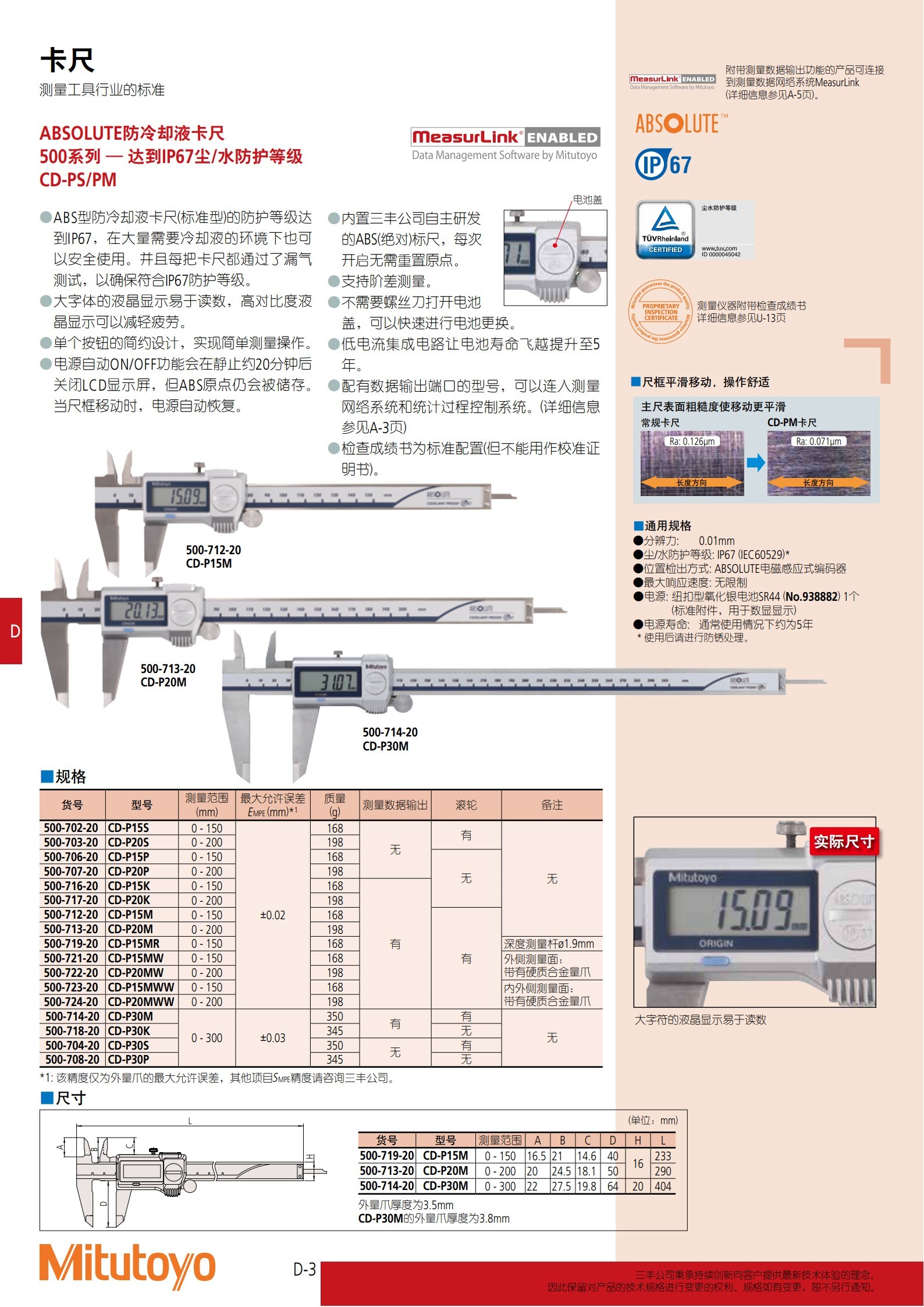 Mitutoyo三丰防冷却液卡尺500-708-20