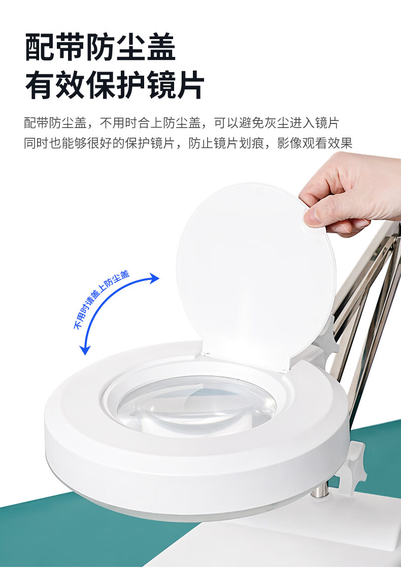 改变放大镜的方向和位置时,如果调节臂锁紧钮太紧,请稍稍放松,待调整好位置和方向后,再拧紧。千万不可强行拉动,以免损坏部件。