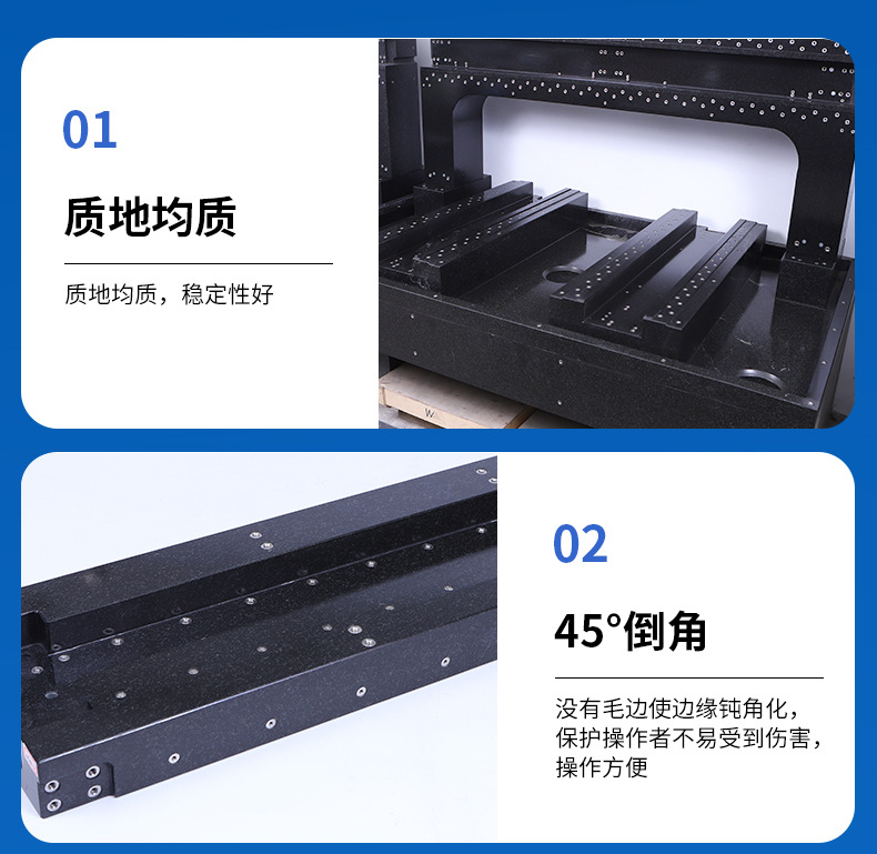 大理石构件的工作表面在使用中保养维护简便,材质稳定,能够保证长期不变形,线膨胀系数小,机械精度高,防锈、防磁、绝缘。不变形,硬度高,耐磨性强
