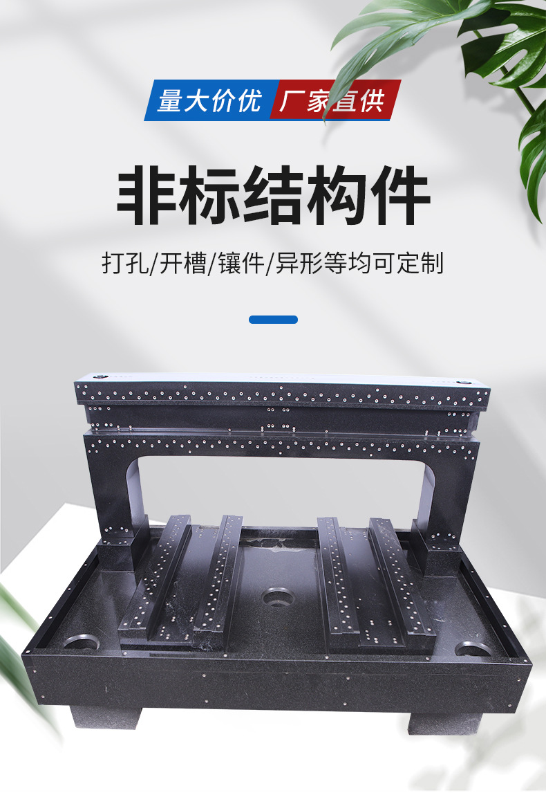大理石构件也可以做机械试验台用途:适用于各种检验工作,精度测量用的基准平面,用于机床机械检验测量基准,检查零件的尺寸精度或行为偏差,是机械行业的使用,也更是受广大实验室的青睐。