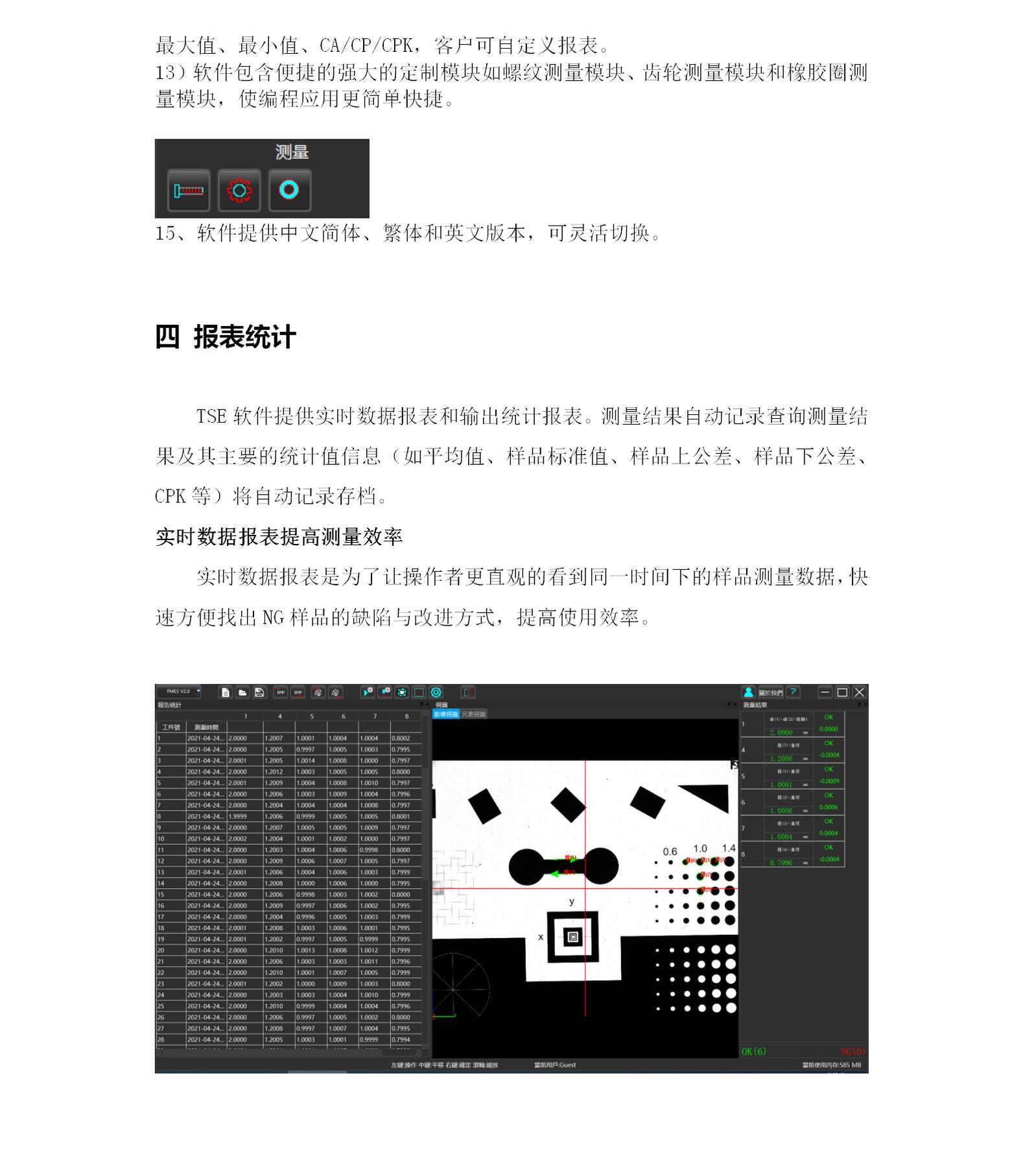 3、测量现场立即评价测量尺寸偏差,一键生成统计分析、检测结果报告等。
