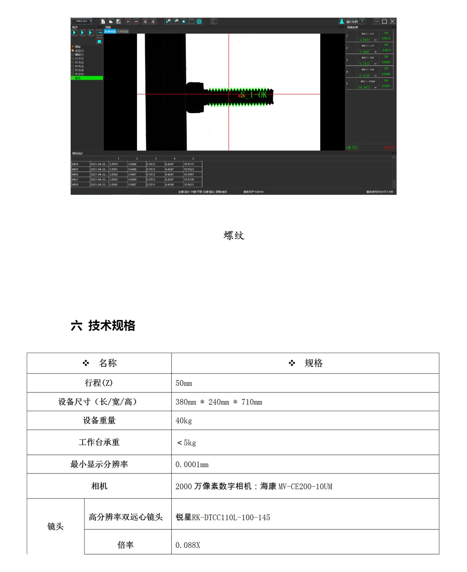 1、高分辨率镜头,1%亚像素图像处理,高精度算法分析;