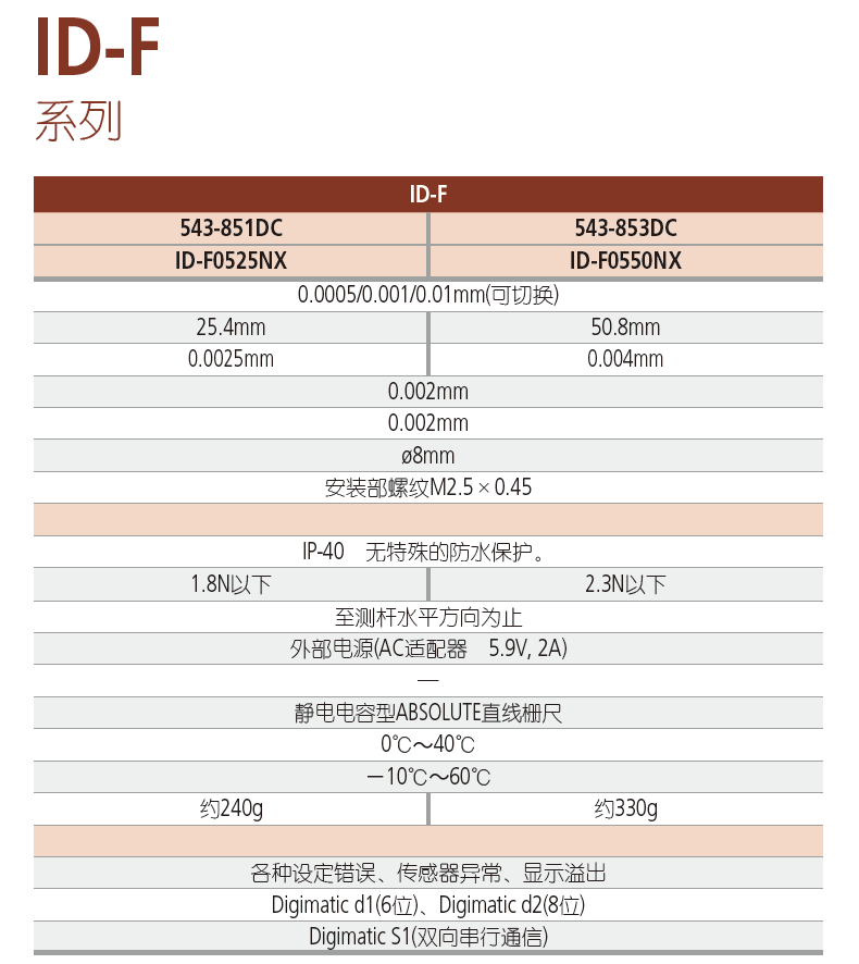 ● 分辨力可通过开关在0.0005/0.001/0.01间切换。