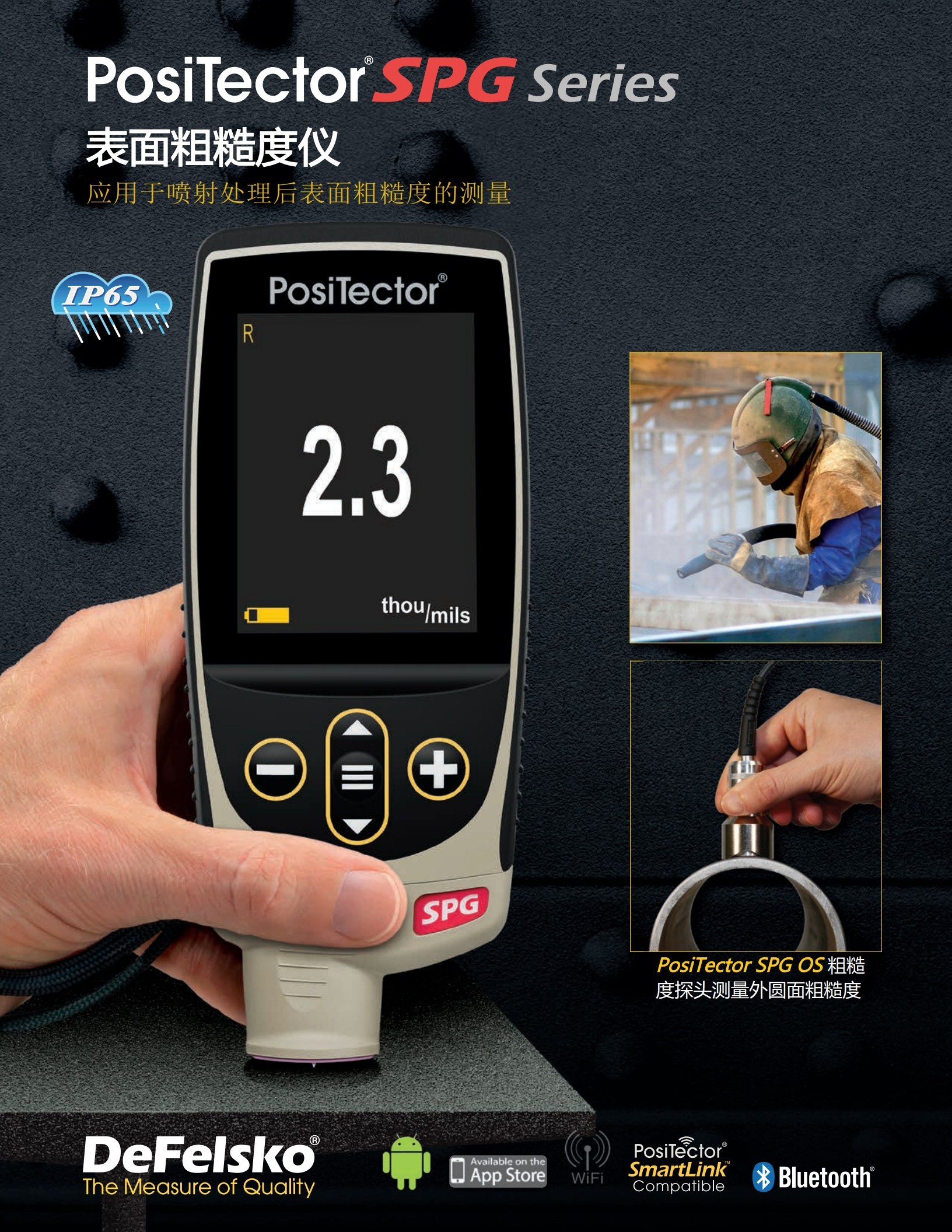 美国DeFelsko SPG产品粗糙度仪,用于金属板材复合板材、建筑材料、粉末涂料等表面粗糙度测量,快速测量模式,每分钟可达50次,适用于大面积的快速精确测量。