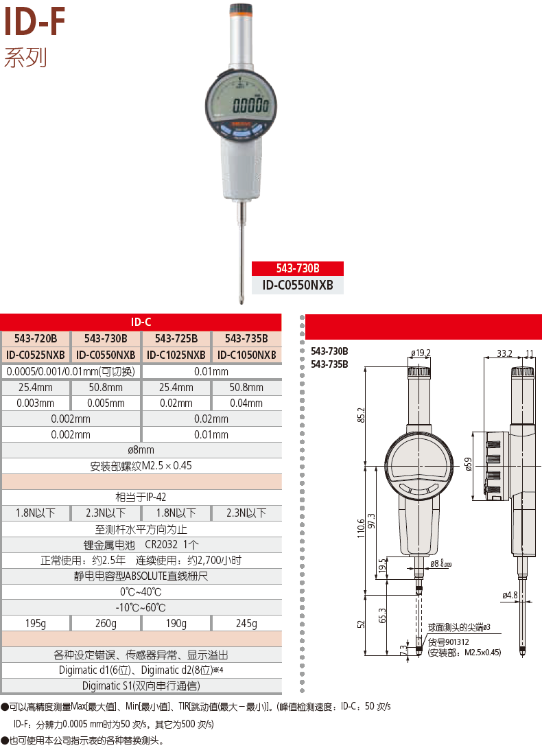 543-700 | ID-C0512NX | 12.7 | 0.0005/0.001/0.01mm (可切换) | 1.5以下 | 175 |