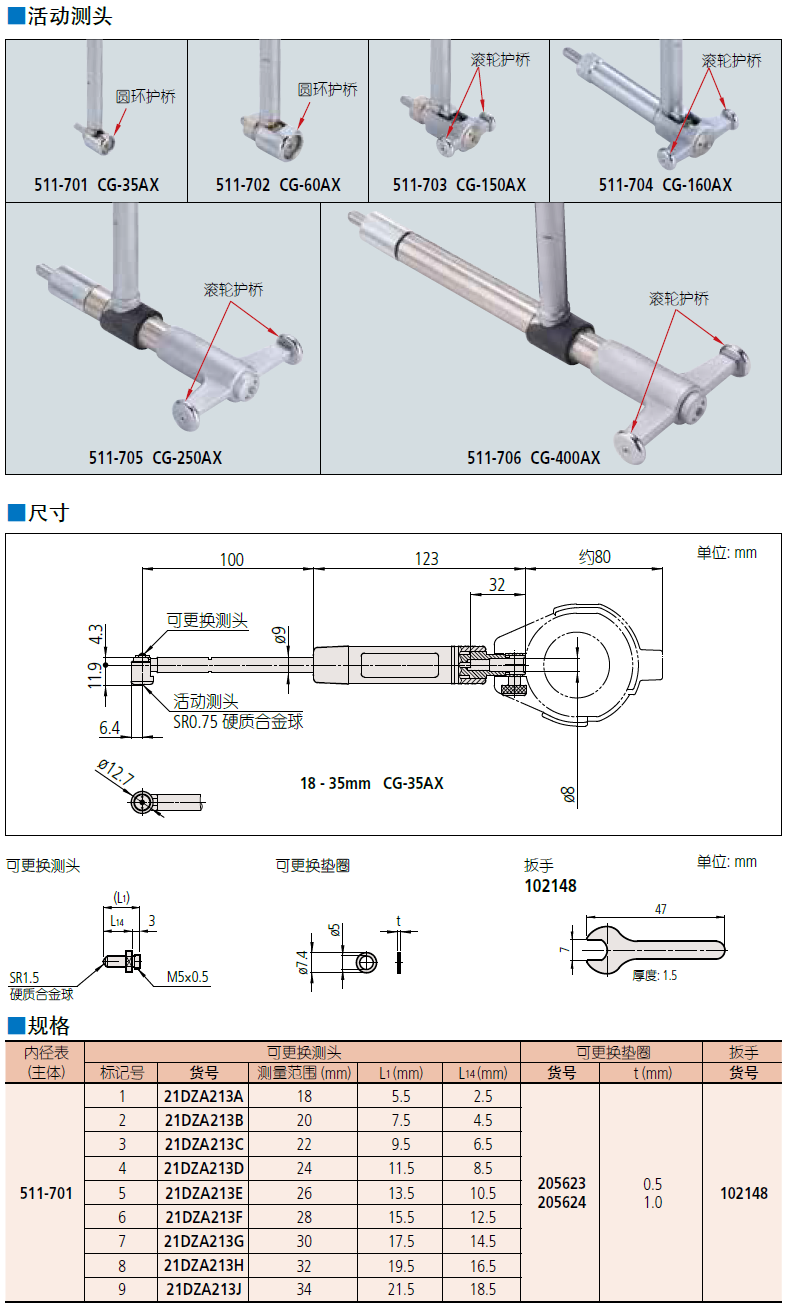 ● 活动测头的有效行程比以往产品更长。(部分机型除外)