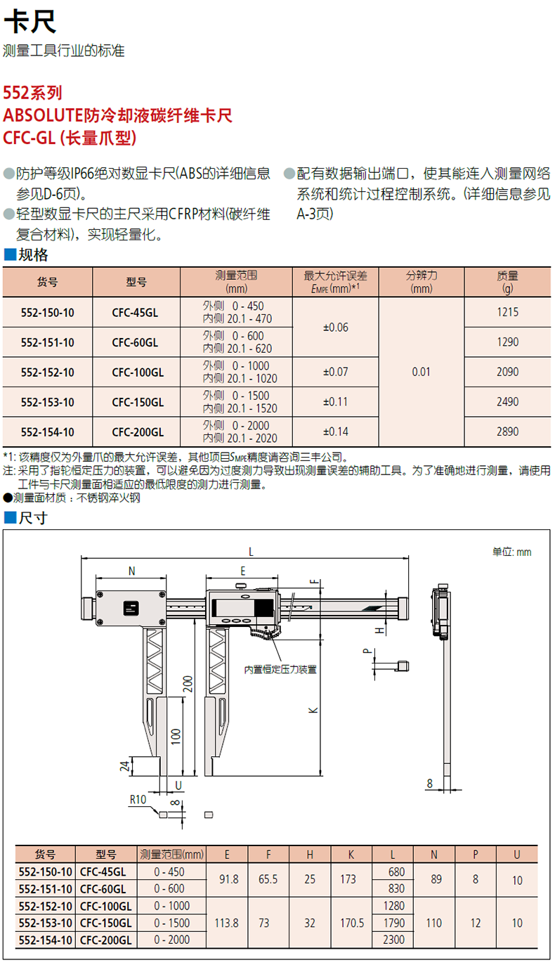 Mitutoyo三丰防冷却碳纤维数显卡尺552-151
