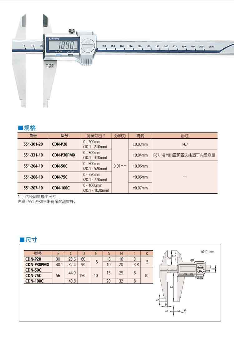 Mitutoyo 三丰CN型数显卡尺551-331-20