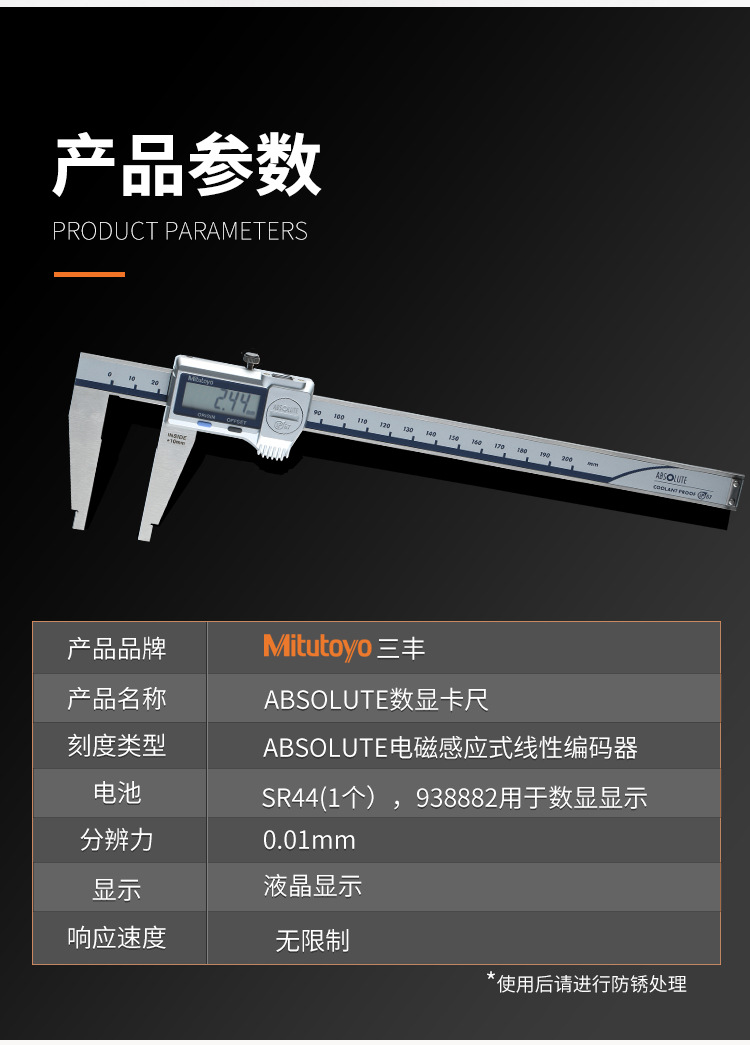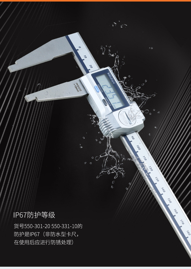 ● 550-301-20/550-331-20的防护等级是IP67(如果卡尺接触液体后,应进行防锈处理)。