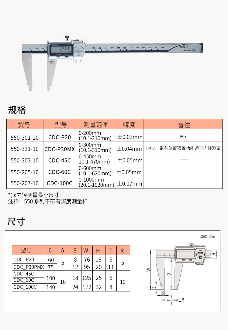 Mitutoyo 三丰C型数显卡尺550-205-10