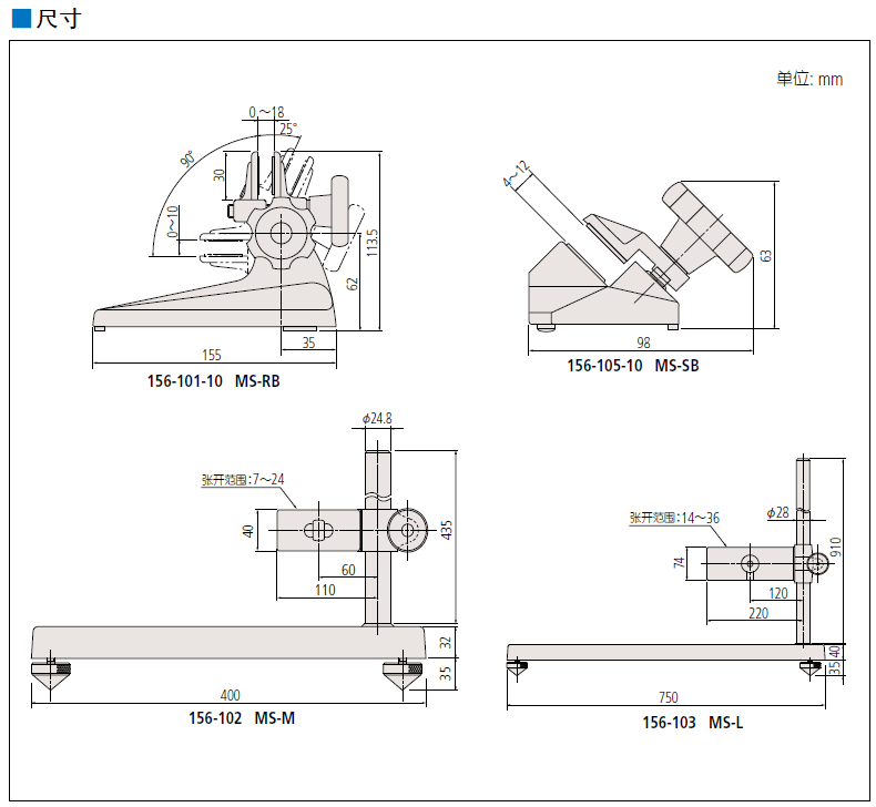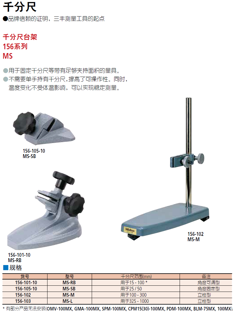 ● 用于固定千分尺等带有足够夹持面积的量具。