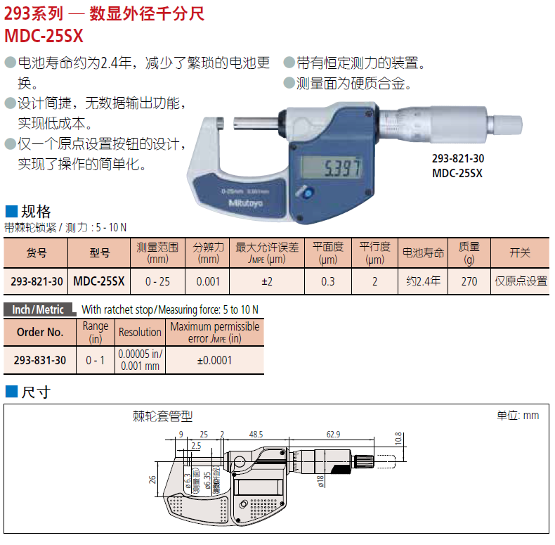 三丰Mitutoyo数显外径千分尺293-831-30