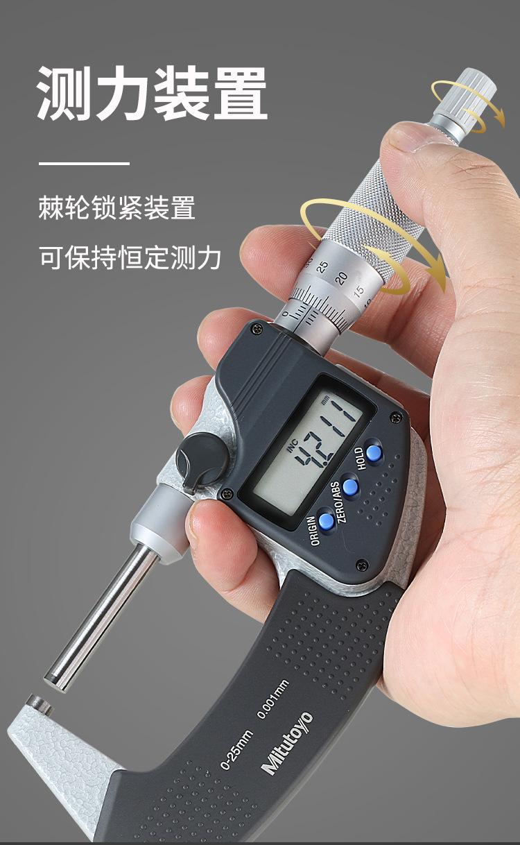 三丰防水防油数显千分尺一般用于产品、工件外径测量,测量范围:0-25mm,分辨率:0.001mm