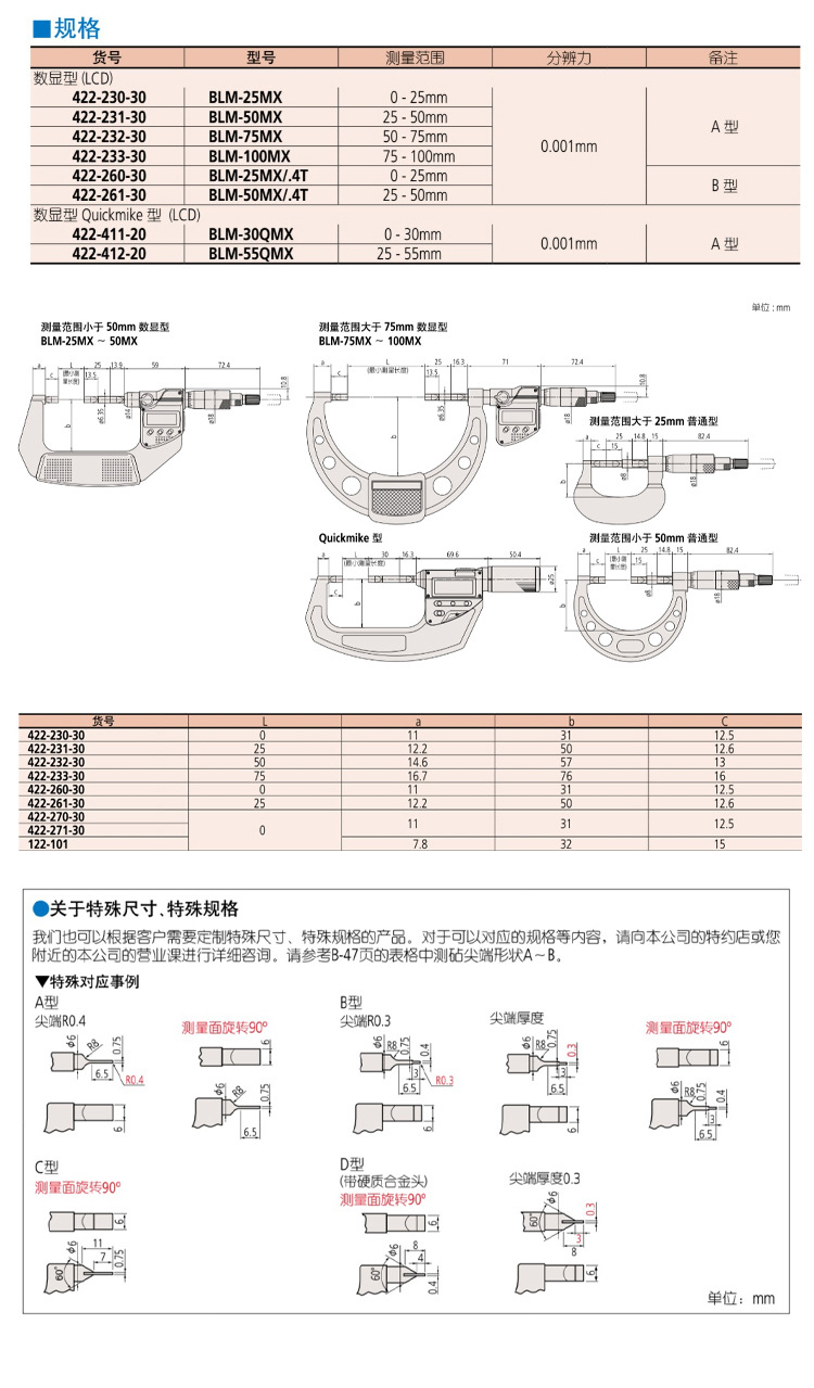 日本三丰Mitutoyo:千分尺,数显千分尺,外径千分尺,数显外径千分尺,0-25千分尺,25-50千分尺,50-75千分尺,75-100千分尺,防水千分尺,快进千分尺,快速千分尺,测力千分尺,棘轮套管千分尺,读数外径千分尺,直进式千分尺,更换测砧千分尺,滑动测砧千分尺,轻量型千分尺,带表千分尺,卡尺型千分尺,螺纹千分尺,盘型千分尺,公法线千分尺,齿厚千分尺,齿轮千分尺,纸厚千分尺,板厚千分尺,壁厚千分尺,花键千分尺,小头千分尺,尖爪千分尺,尖头千分尺,V型测砧千分尺,3沟千分尺,5沟千分尺,奇数沟千分尺,丝攻千分尺,丝锥千分尺,薄片千分尺,叶片千分尺,刀片千分尺,刀口千分尺,罐口接缝千分尺,压接高度千分尺,极限千分尺,杠杆千分尺,凹槽千分尺,