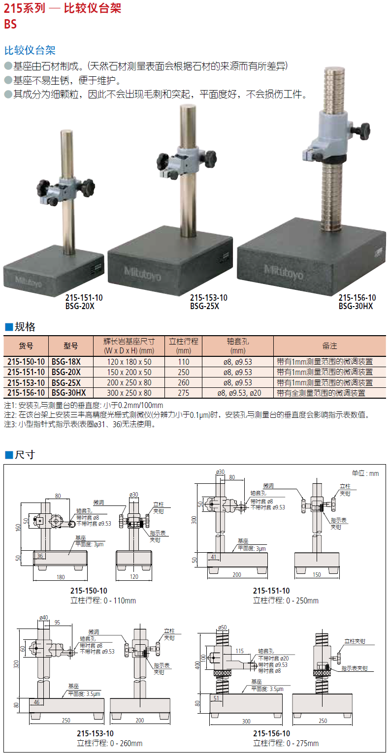 三丰花岗岩比较仪台架是安装以及密测量仪的基本装置,通过在台架上安装.Digimatic千分表,MU-CheckerI测头和线性测微计等密量具,可通过多种测量方式完成各种测量务,坚固的花岗岩基座可防止毛刺,堆积,生锈现象的发生,而且不会随时间的流逝而变形.