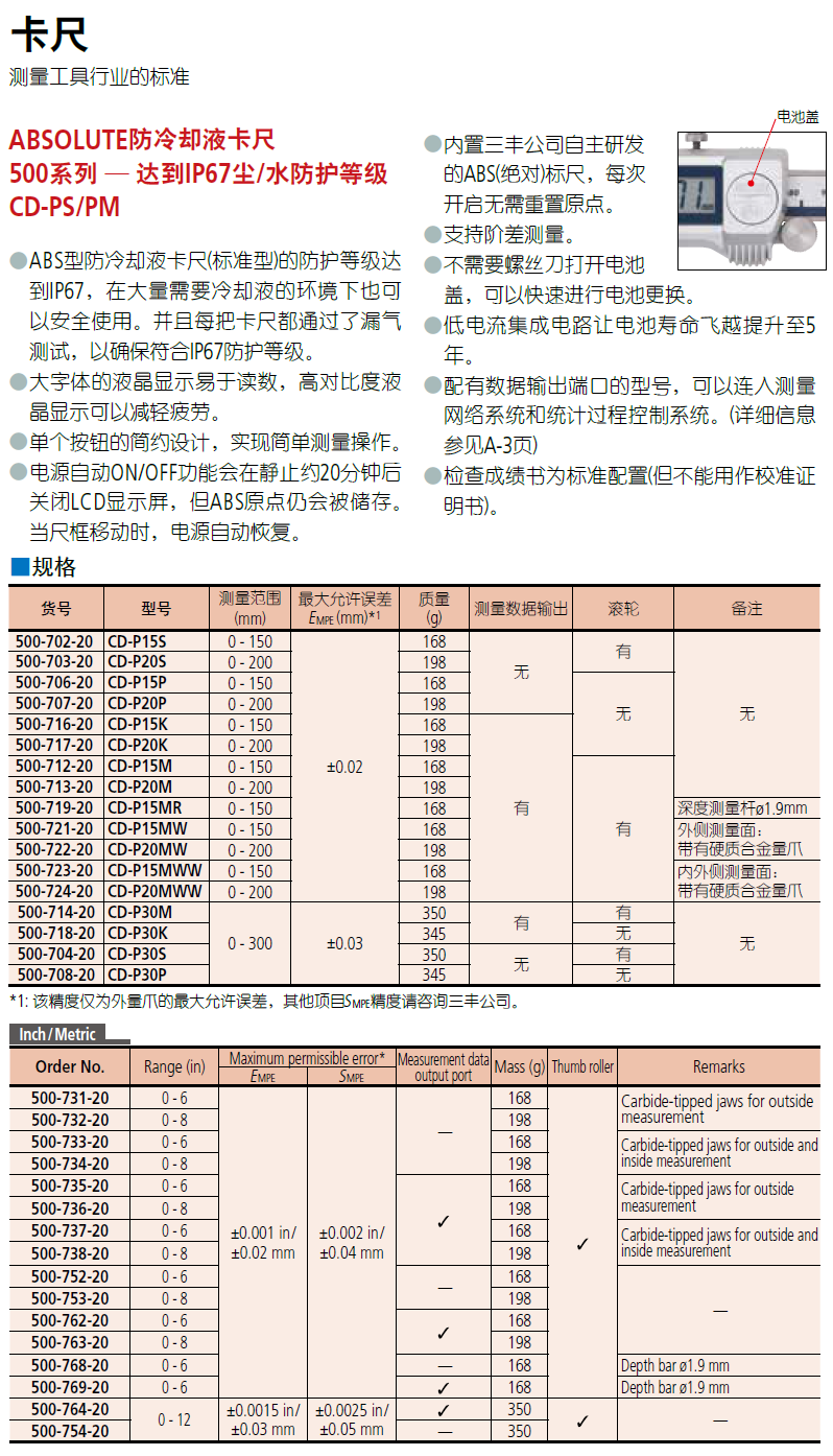 日本三丰Mitutoyo:数显卡尺,游标卡尺,带表卡尺,0-100卡尺,0-150卡尺,0-200卡尺,0-300卡尺,0-450卡尺,0-600卡尺,0-1000卡尺,0-1200卡尺,0-1500卡尺,0-2000卡尺,防水数显卡尺,防尘数显卡尺,防冷却液卡尺,内径卡尺,单爪卡尺,碳纤维卡尺,钨钢卡尺,陶瓷卡尺,硬质合金卡尺,偏置卡尺,偏置中心线卡尺,中心距卡尺,尖爪卡尺,薄片卡尺,叶片卡尺,刀片卡尺,内侧卡尺,外凹槽卡尺,外沟槽卡尺,内凹槽卡尺,内沟槽卡尺,管壁厚度卡尺,钩式游标卡尺,低测力卡尺,快速卡尺,