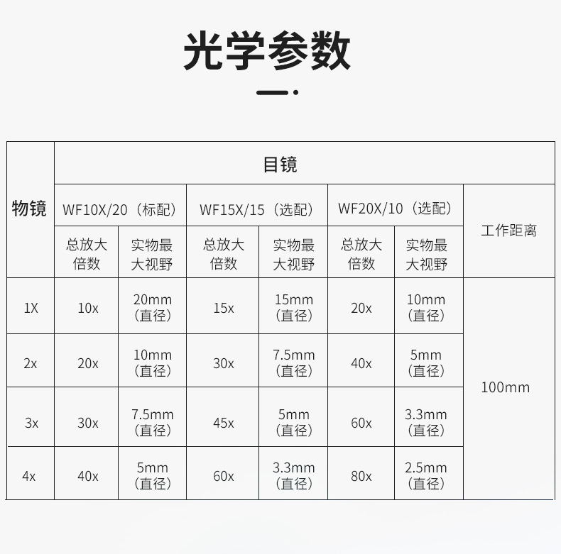 1.5X主物镜,工作距离31.1mm | |