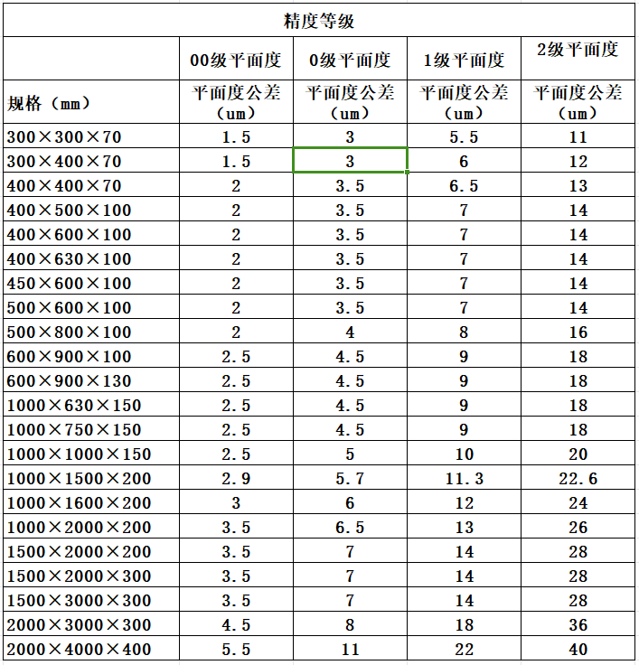 规格(mm) | 平面度公差(um) | 平面度公差(um) | 平面度公差(um) | 平面度公差(um) |