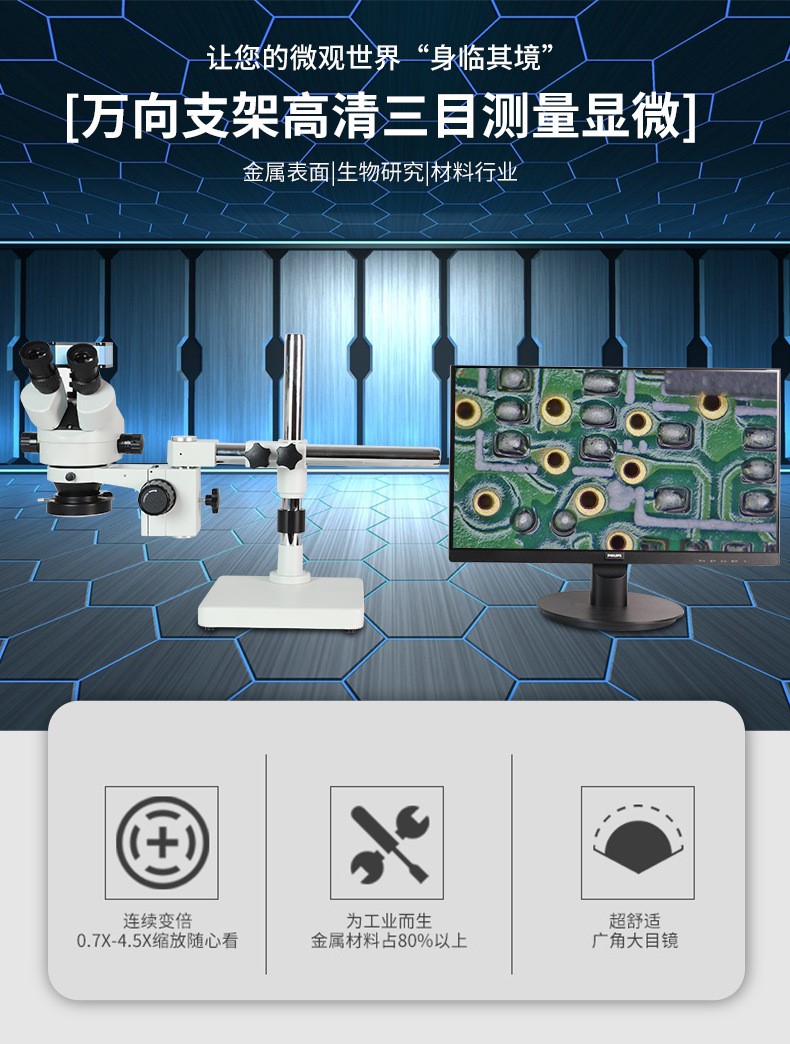 万向支架三目高清工业显微镜HDMI数码视频ZZT-7045