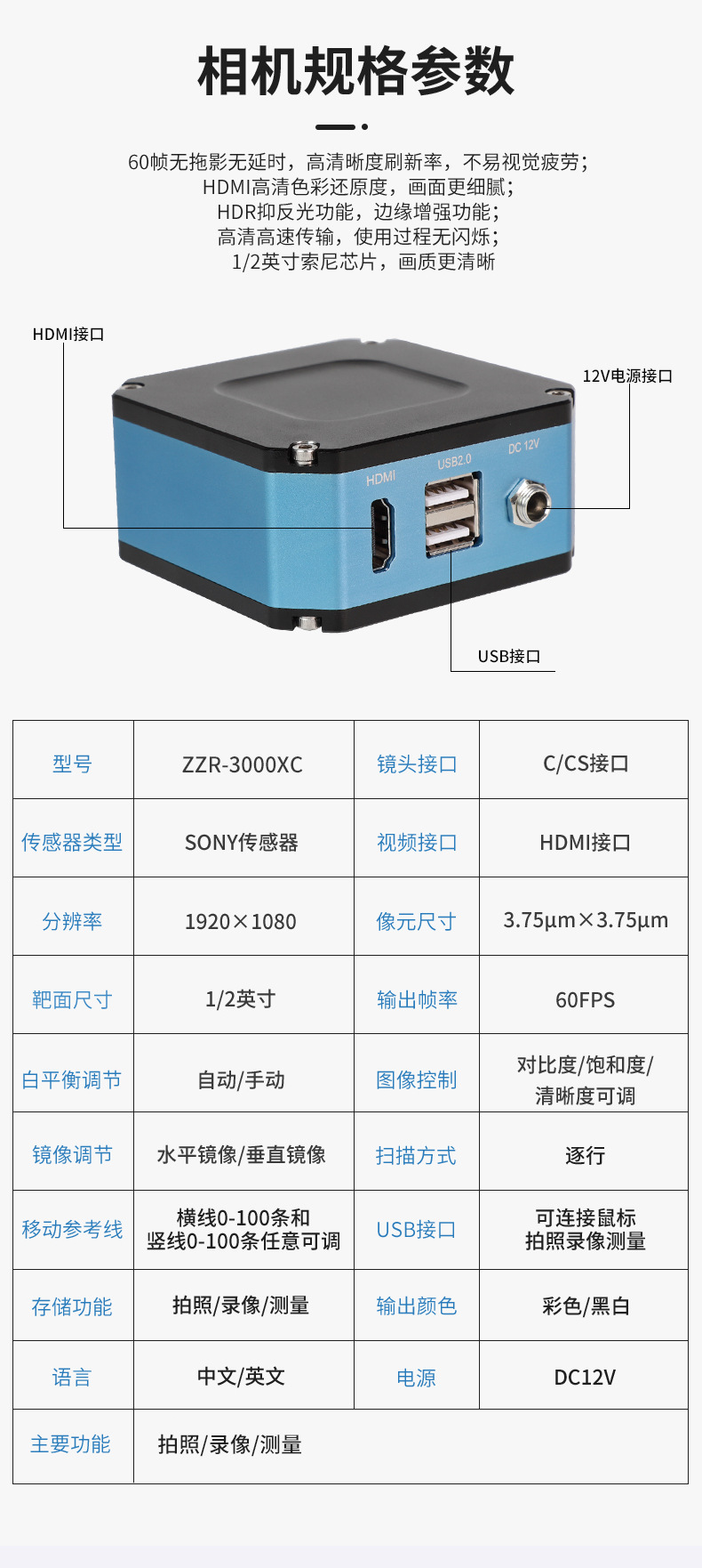 标配清单 | 1、ZZR-3000XC高清测量CCD相机1台; 2、三目连续可调变焦镜头1个; 3、标准底座和可调支架1套; 4、高品质LED可调光源1个; 5、高清测量CCD相机适配器1个; 6、32G存储卡1个; 7、标准玻璃校正尺1块; 8、USB光电鼠标1个; | |