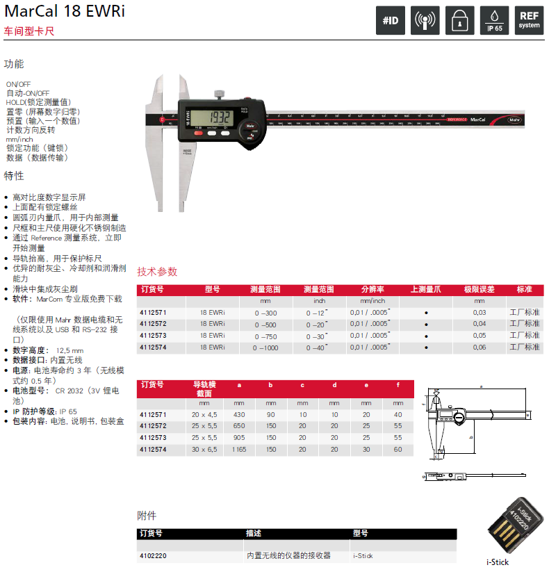 车间型卡尺 MarCal 18 EWR