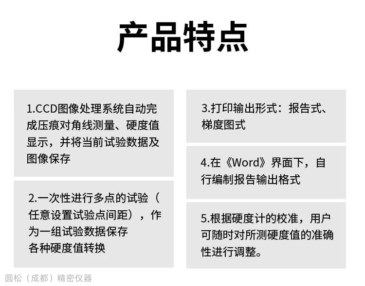 4. 精准的控制系统,可自动进行全硬度标尺的单位转换;