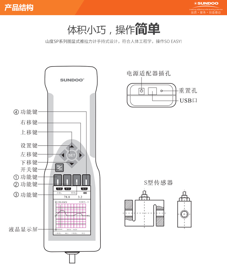 SUNDOO山度曲线图显示推拉力计SP-1K
