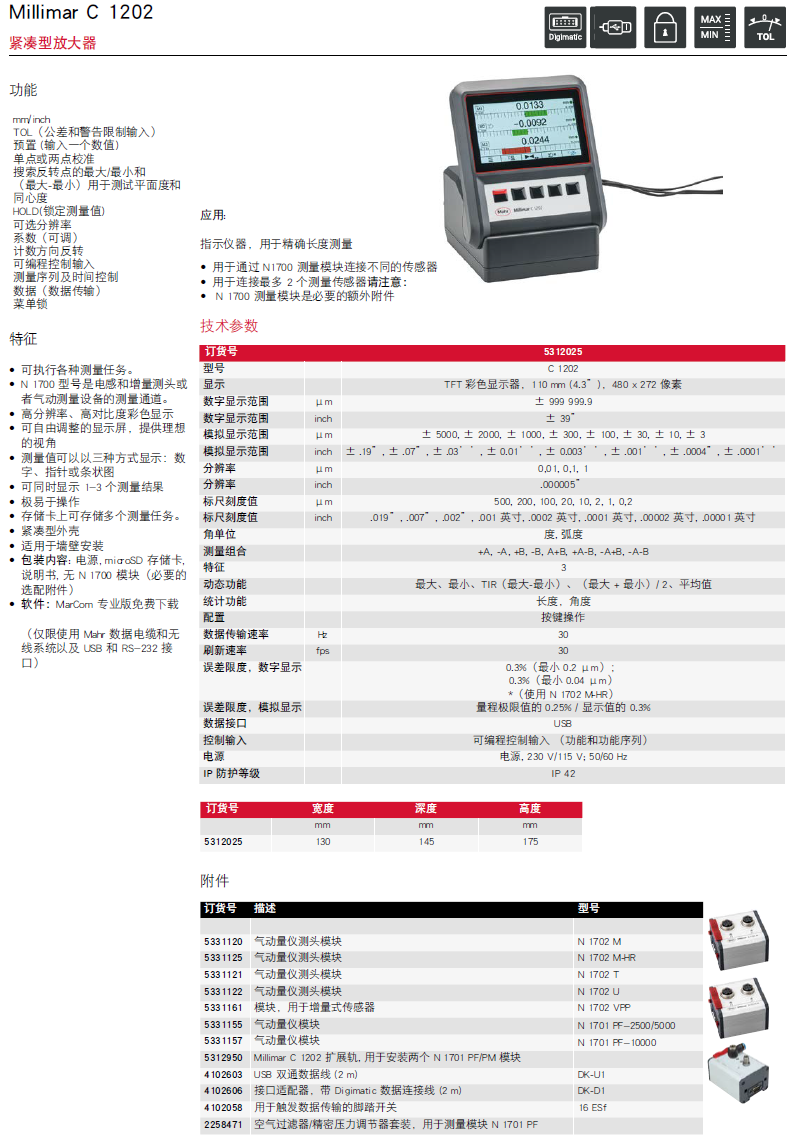 | Millimar C 1202 Metric/Inch version | 产品编号 5312025 | |