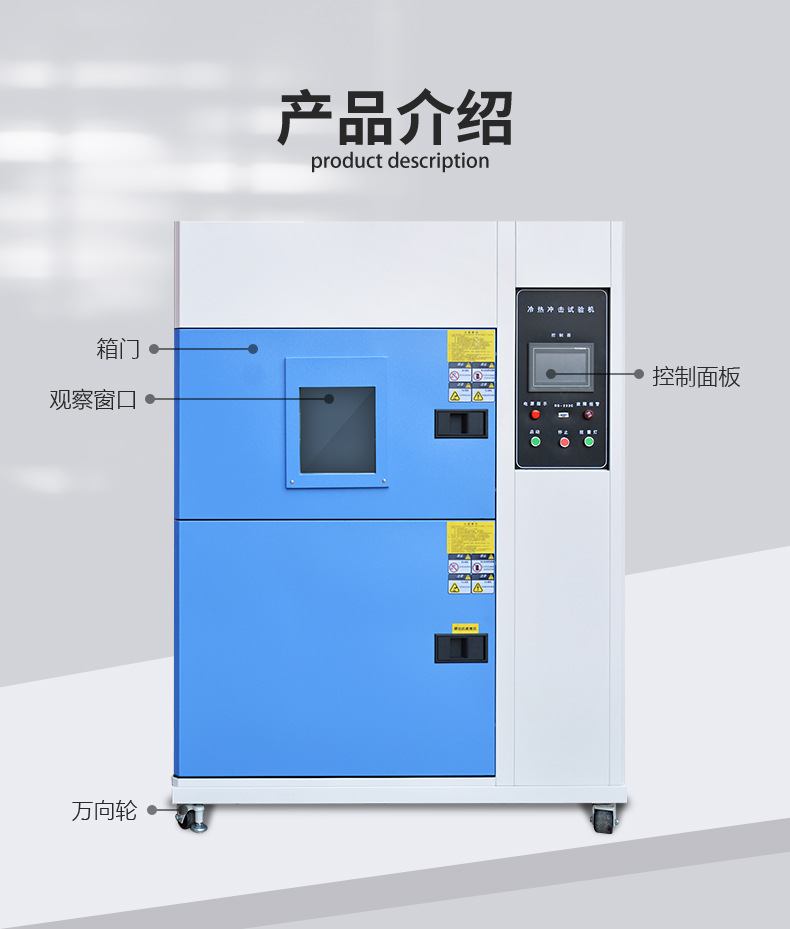 冷热冲击试验机是金属、塑料、橡胶、电子等材料行业的测试设备,用于测试材料结构或复合材料,在瞬间下经高温及极低温的连续环境下所能忍受的程度,得以在短时间内检测试样因热胀冷缩所引起的化学变化或物理伤害。分为两厢式和三厢式,区别在于试验方式和内部结构不同,产品符合标准为:GB/T2423.1-2008试验A 、GB/T2423.2-2008试验B、GB-T10592-2008、GJB150.3-198、GJB360A-96方法107温度冲击试验的要求。