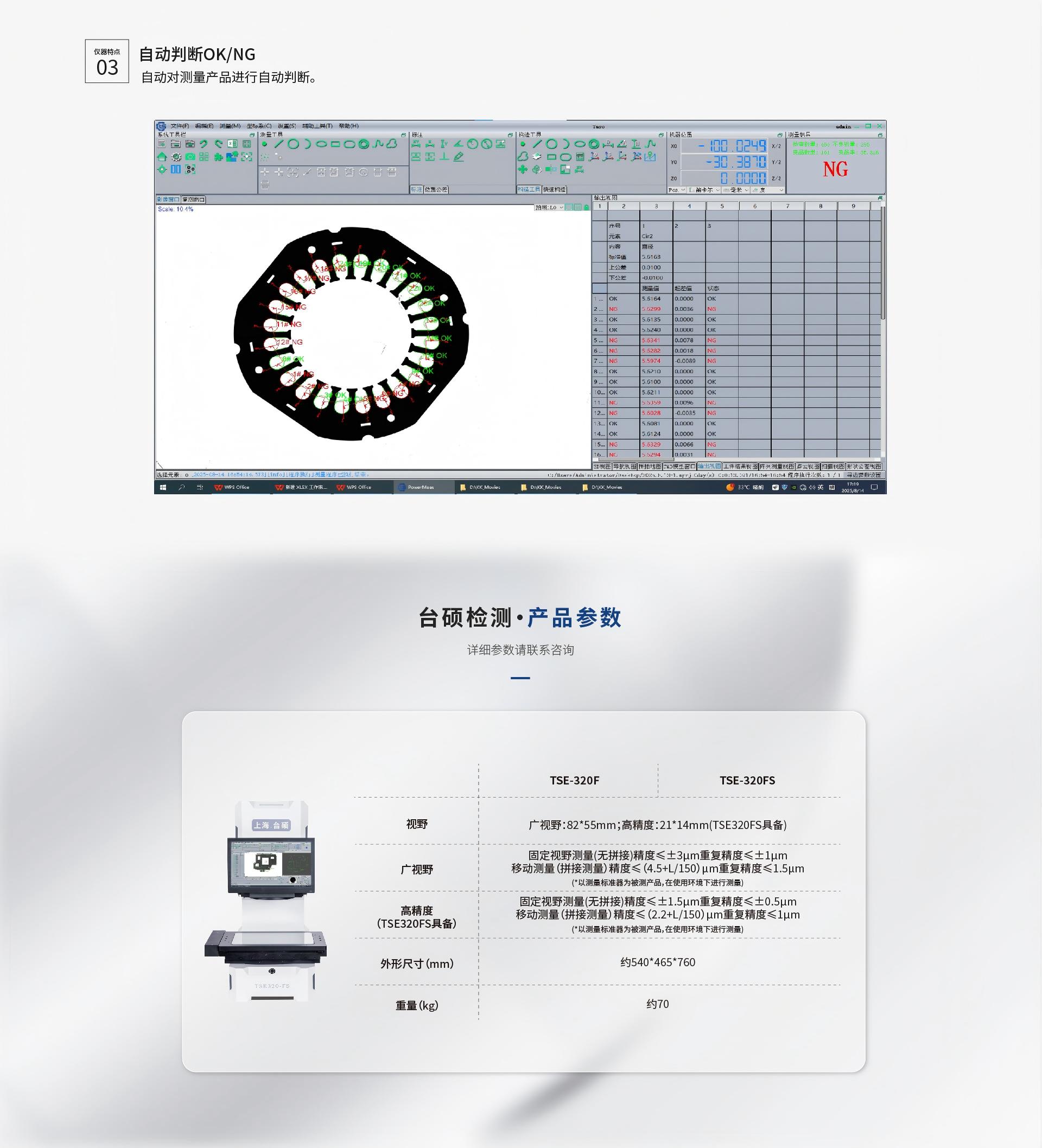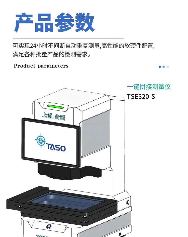 TSE-300系列拼接式闪测仪采用双远心光学系统,结合高精度图像拼接测量算法。在CNC模式下,任意放置工件后,只需按一下启动键,即可快速完成尺寸测量和评价,能快速测量产品的平面尺寸和形位公差。仪器量测测量效率是传统影像仪器的10-20倍。
