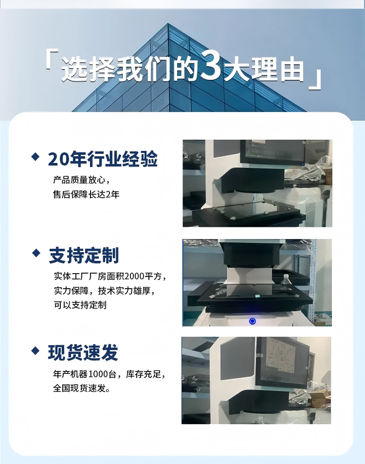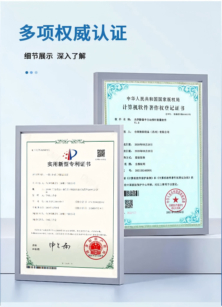 12) | 高精度 high-accuracy | 移动测量(拼接测量)精度≤±(2.0+L/150)μm重复精度≤±1.5μm The accuracy of mobile measurement (splicing measurement) ≤ ±(2.0+L/150)μm, and the repeatability accuracy≤±1.5μm 固定视野测量(无拼接)精度≤±1.2μm 重复精度≤±1.0μm The fixed field of view measurement (no splicing) accuracy ≤±1.2μm and the repeat accuracy ≤ ±1.0μm (*注:以测量标准器为被测产品,在使用环境下进行测量) | |