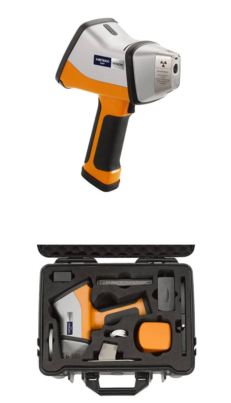 便携:日立手持式光谱仪X-MET8000小巧轻便(含电池1.5公斤),可随时随地被运输和使用。轻便携支架可被放入分析仪的运输箱内